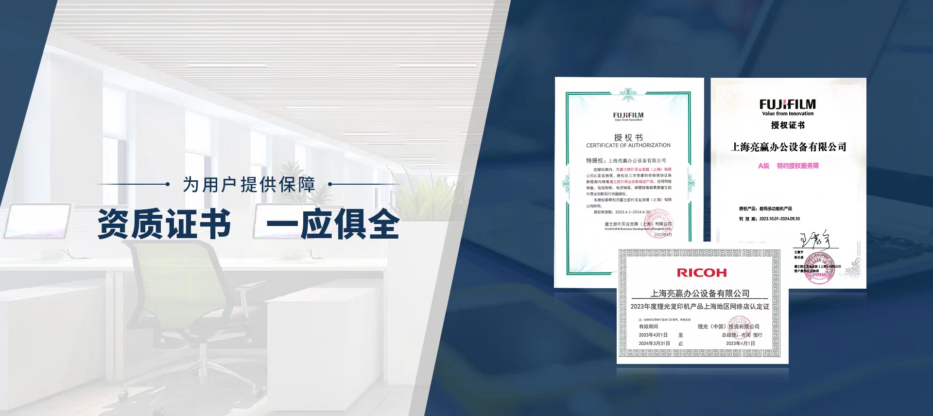 上海亮贏辦公設備有限公司是一家從事辦公設備銷售、租賃和外包服務的專業化公司,致力于為企業提供完善的辦公設備租賃解決方案和服務,主要產品有:普通和高速的彩色黑白數碼復印機、功能一體機、工程機等辦公設備 。上海亮贏不斷革新技術、強化服務力量、持續穩步發展,力求讓客戶獲得專業及時的服務、確保每位客戶的利益及滿意度。協助廣大用戶降低辦公成本,提高辦公效率,建立節約、高效、安全、環保、健康的辦公環境,是我們不變的追求。